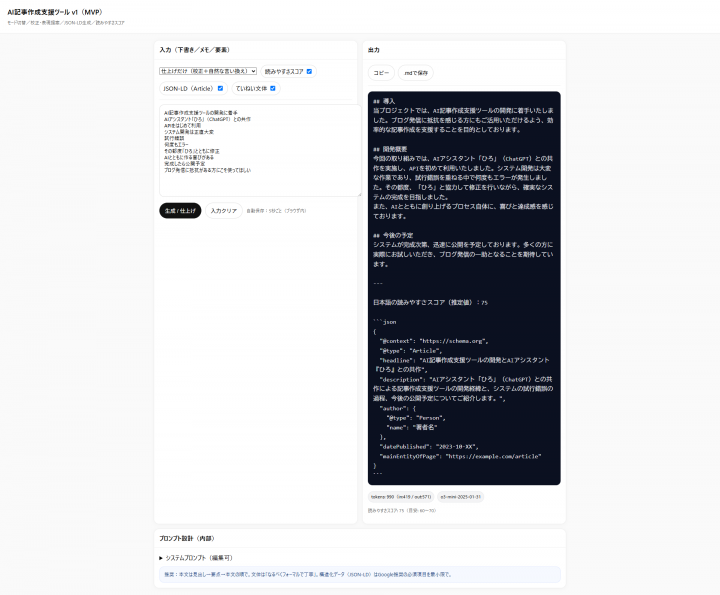AIアシスタントの「ひろ」とともに、AI記事作成支援ツール(試作版/MVP) の制作に着手しました。