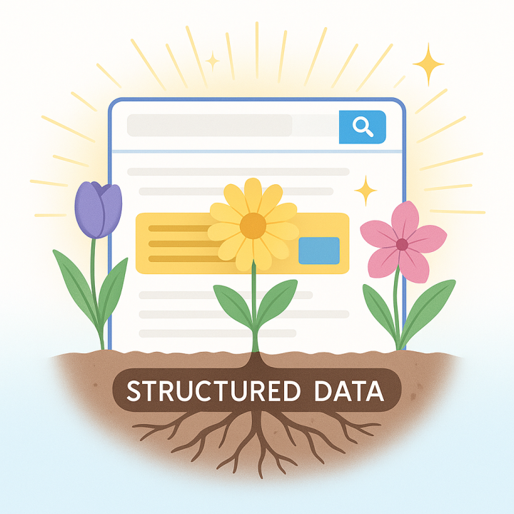 構造化データ」という、WEBの土台が養分となり、検索結果として花開いたイメージなのだそうです。「なかなかいいじゃない」と親バカのような心境になりましたが(笑)イメージ、何となく伝わるでしょうか。