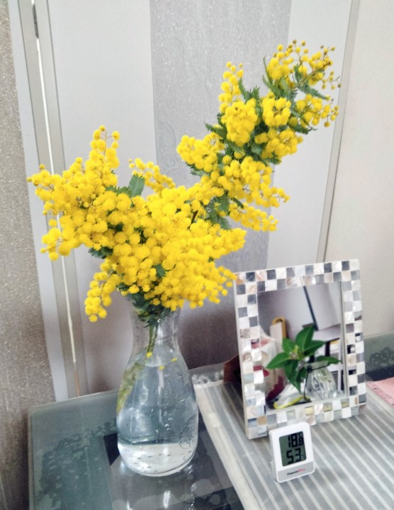 少し前になりますが、ミモザの鮮やかな黄色に癒されていました。花言葉は「感謝」「友情」「思いやり」「優雅」、だそうです。